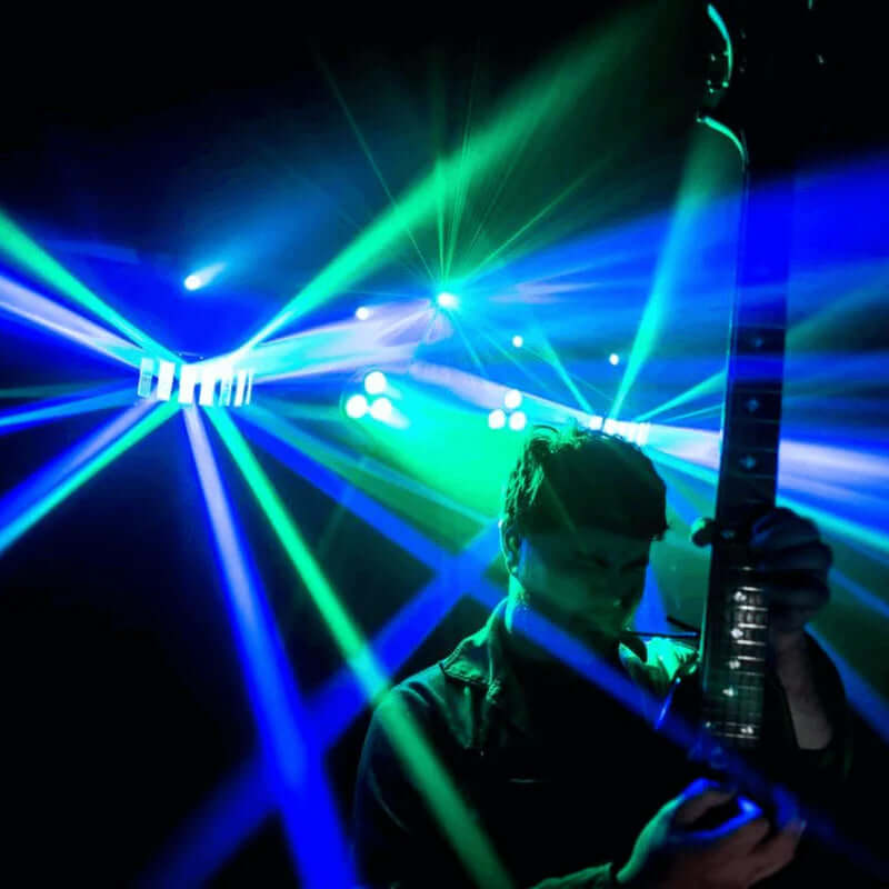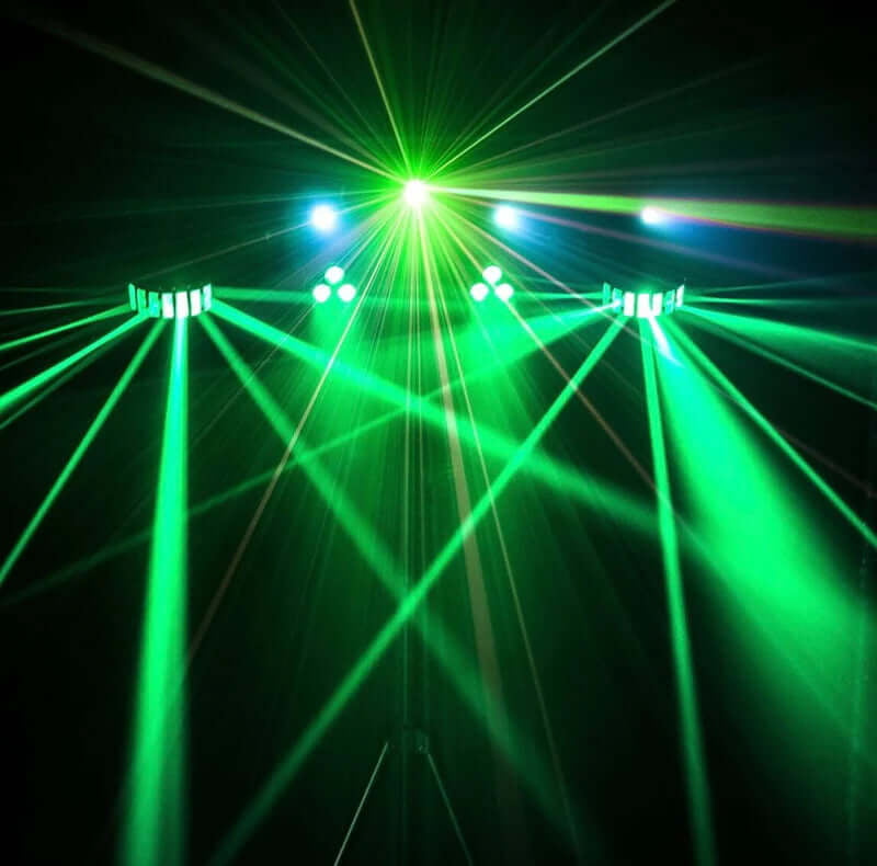 - Pack de lumières comportant 2 Derby Beam à LED, 2 PAR à LED, 4 LED pour effet Strobe et UV et 1 LASER vert et rouge 🌈
